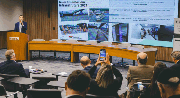Presidente do Porto de São Francisco detalha investimentos de R$ 340 milhões em infraestrutura, durante evento na Fiesc