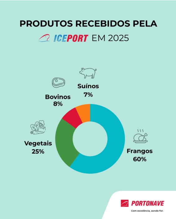 Em 2025, os frangos representaram 60% da movimentação, seguidos por vegetais (25%), carnes bovinas (8%) e suínos (7%). No último trimestre de 2025, a Iceport foi habilitada para o recebimento de carne bovina e suína dos Estados Unidos e carne bovina do Chile devido à confiabilidade das operações.