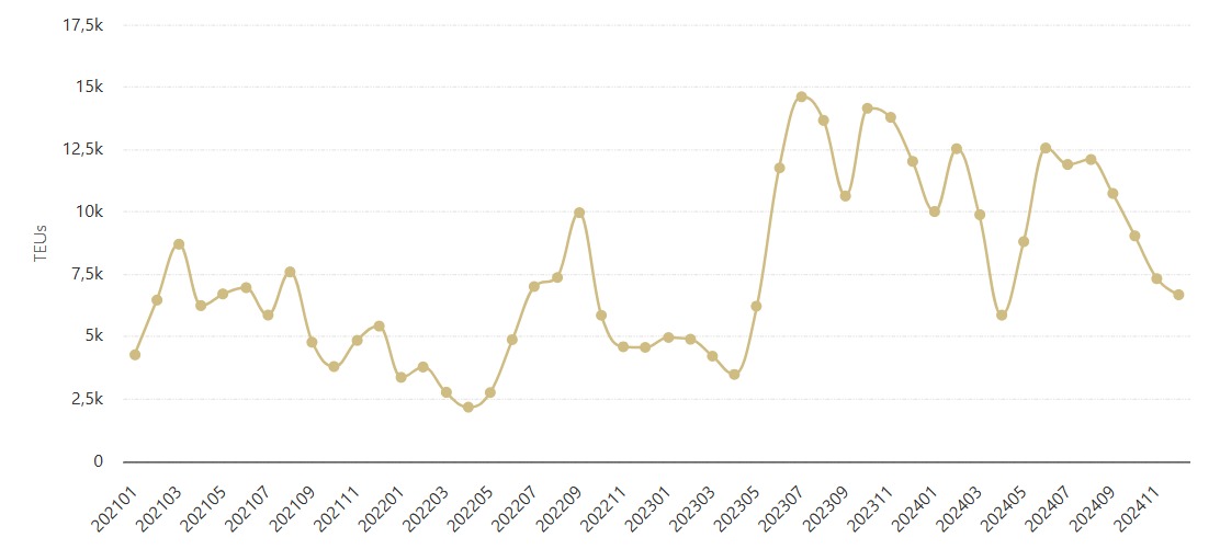Exportações de açúcar | Jan 2021 – Dez 2024 | TEUs