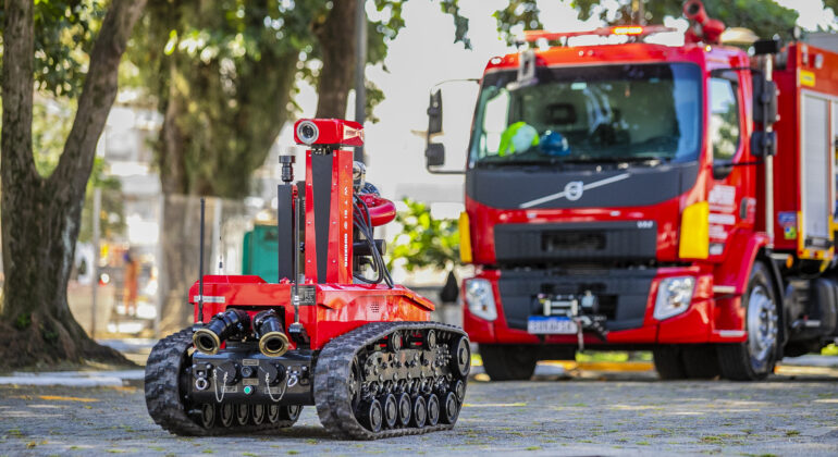 Além de atuar no combate a incêndios, o robô conta com detectores de fumaça, sensores de gases e quatro câmeras com resolução em 4K, que permitem identificar áreas de risco, pontos críticos e possíveis vítimas. De acordo com o fabricante, o equipamento, inicialmente movido a diesel, passou a operar com sistema 100% elétrico, o que trouxe avanços significativos, especialmente na atuação em ambientes com atmosfera explosiva.