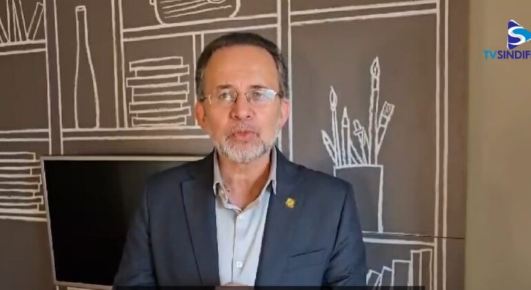 O presidente do Sindifisco Nacional, Auditor-Fiscal Dão Real, fala à categoria sobre a perspectiva de reunião nesta quinta (22) ou sexta-feira com o Ministério da Gestão e da Inovação (MGI) para negociar o reajuste do vencimento básico. A Direção Nacional, assim como toda a categoria, espera que o governo apresente, desta vez, uma proposta efetiva para o reajuste do vencimento básico. Na reunião do dia 14, o MGI apresentou somente uma premissa genérica para balizar as negociações (assista ao vídeo acima).