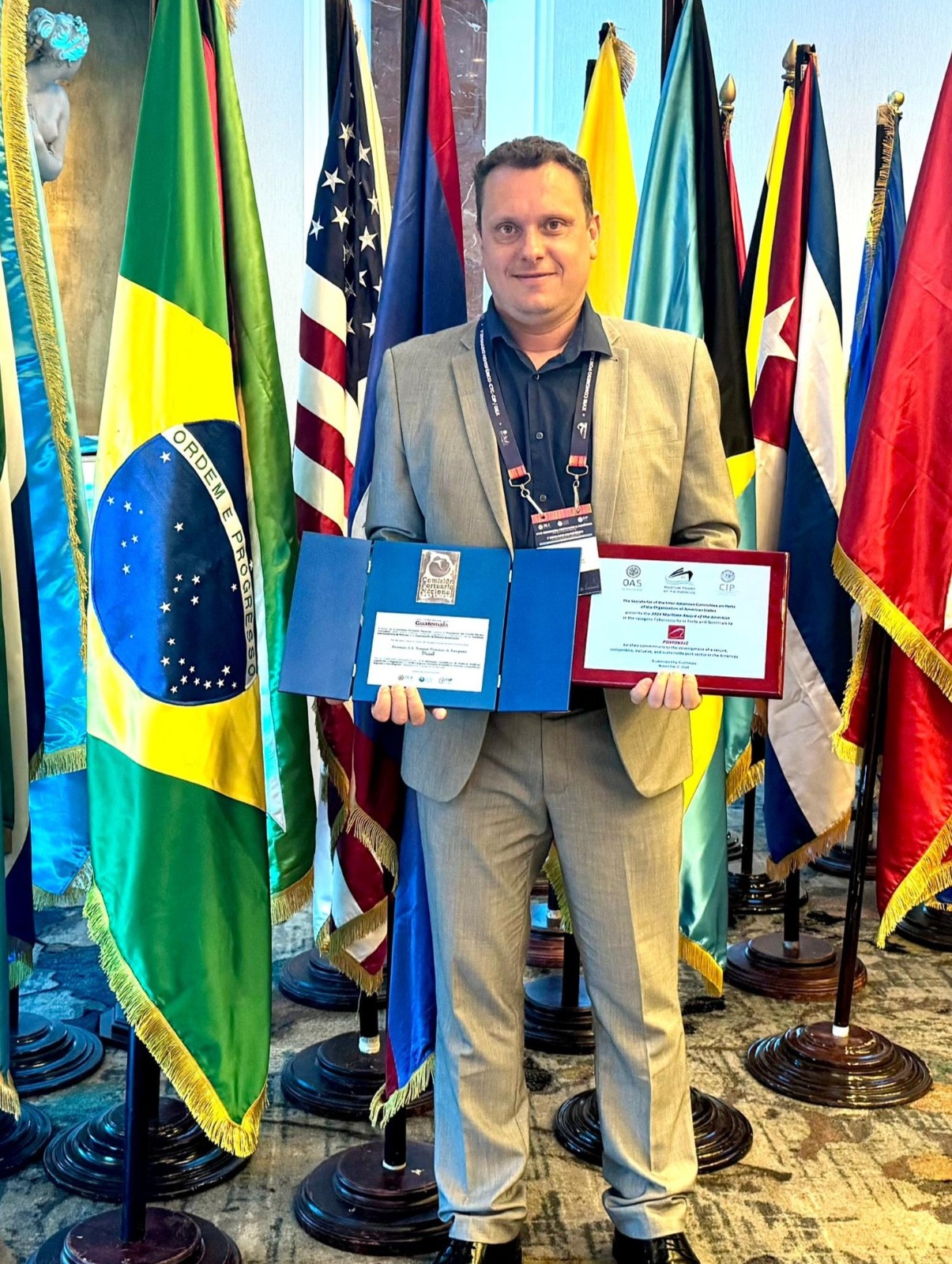 A Companhia conquistou o Prêmio Marítimo das Américas em Cibersegurança Portuária pelas ações e investimentos realizados em prol da proteção digital. A cerimônia de premiação foi realizada na capital da Guatemala, a Cidade de Guatemala, pela Comissão Interamericana de Portos (CIP), na última semana. O reconhecimento demonstra o compromisso da Portonave com a segurança da informação. Na categoria Cibersegurança Portuária, mais de 20 portos e terminais de sete países das Américas se inscreveram.