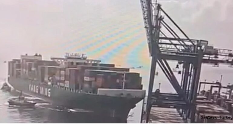 Momentos de horror no porto de Evyapport: Navio porta-contêineres gigante chamado YM Witness colidiu contra pórticos – ACIDENTES – SeaNews