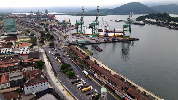 Tarifaço dos EUA impulsiona recorde histórico de movimentação de cargas no maior porto do Brasil