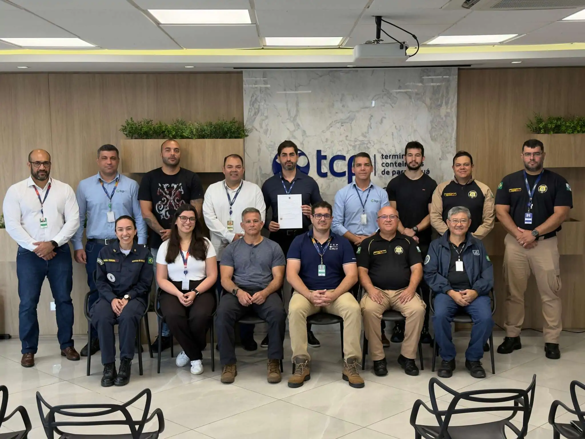 A TCP, operadora do Terminal de Contêineres de Paranaguá, foi oficialmente reconhecida por atender aos padrões internacionais de segurança portuária. A empresa recebeu a Declaração de Cumprimento (DC) nº 27/2025, emitida pela Conportos, certificação que comprova a conformidade com o ISPS Code — protocolo global que orienta medidas de proteção para navios e instalações portuárias. O documento, válido até 2030, foi entregue em cerimônia realizada no prédio administrativo da TCP, com participação da Cesportos-PR, da Polícia Federal e da Autoridade Portuária.